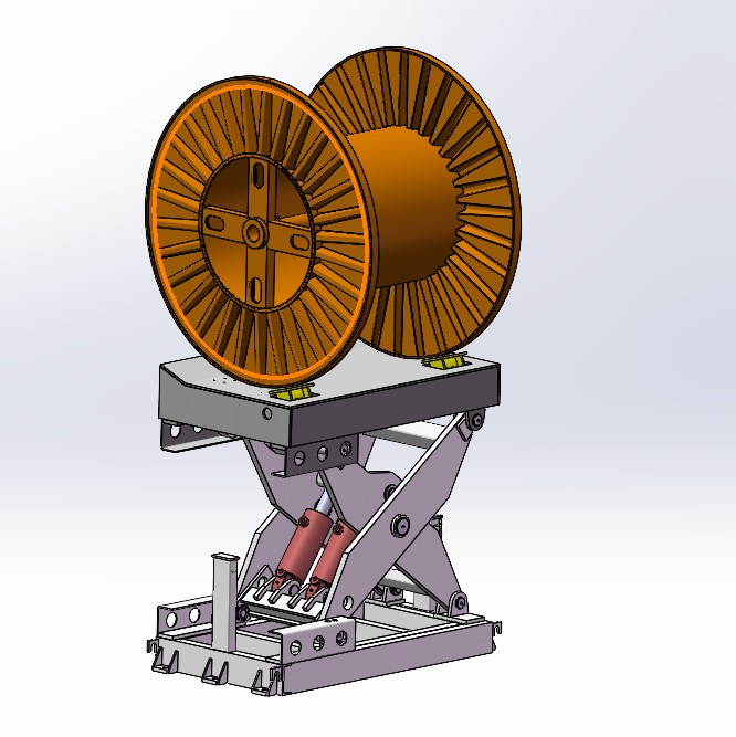 An innovative hydraulic bobbin-loading mechanism for the twisting machine has been developed. The lifting platform and scissor lift work in tandem to achieve automatic loading and unloading of the alignment reels, eliminating the need for workers to manually lift and load the reels.