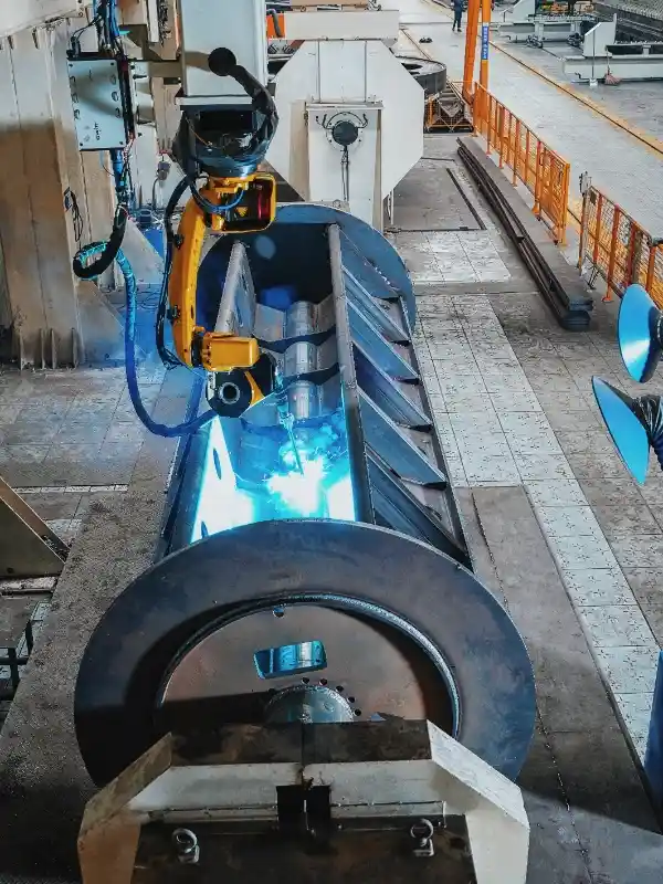 Клетка имеет конструкцию передачи с земляным валом, каждая клетка приводится в движение независимым двигателем с электрической синхронизацией управления.
